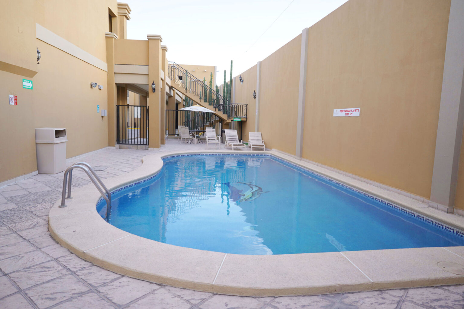 Relájate y refréscate en nuestra piscina al aire libre, perfecta para disfrutar del sol de Hermosillo.